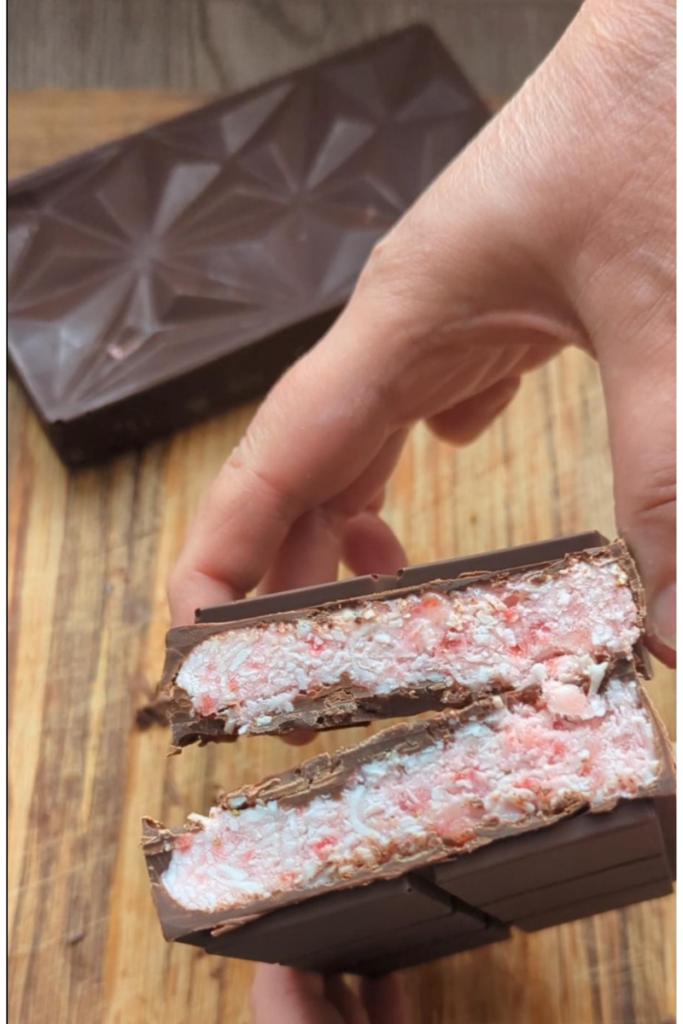 Reimagining the viral Dubai chocolate with a healthier twist! Frozen strawberry, coconut shreds and yogurt coated in a light chocolate shell. All the satisfying crunch, none of the heavy feeling. You've got to try this!Keep all the deliciousness while making it a treat you can feel good about!It's perfectly refreshing, crunchy, and guilt-free! My new favorite summer treat. Why is this version better?👉Made with healthy ingredients 👉So much less expensive 👉So quick to put together 👉High protein and fiber👉Store it in the freezer for a great treat anytime